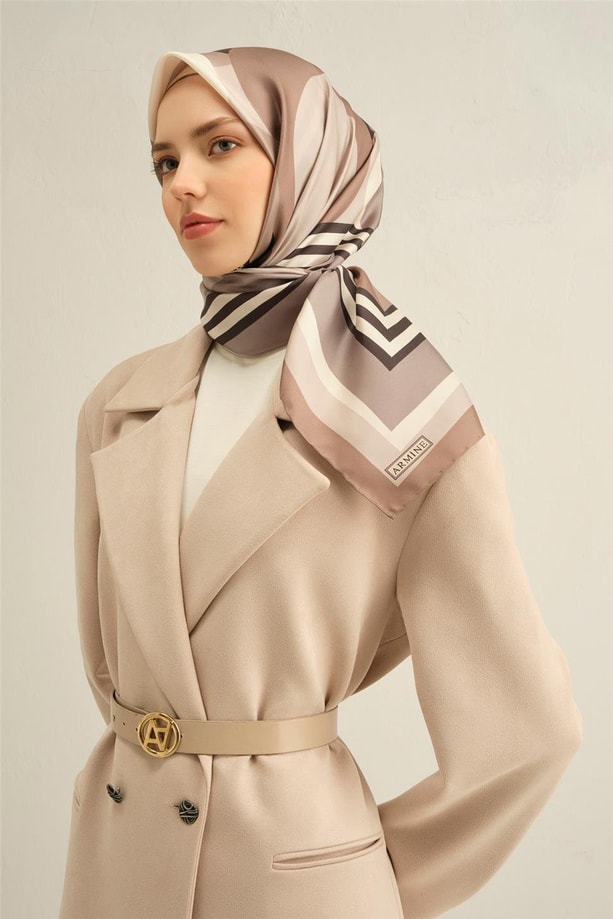 Armine Geometrik Desenli Saf İpek Sura Eşarp 9313D 82 (E25YA9313D01-82)