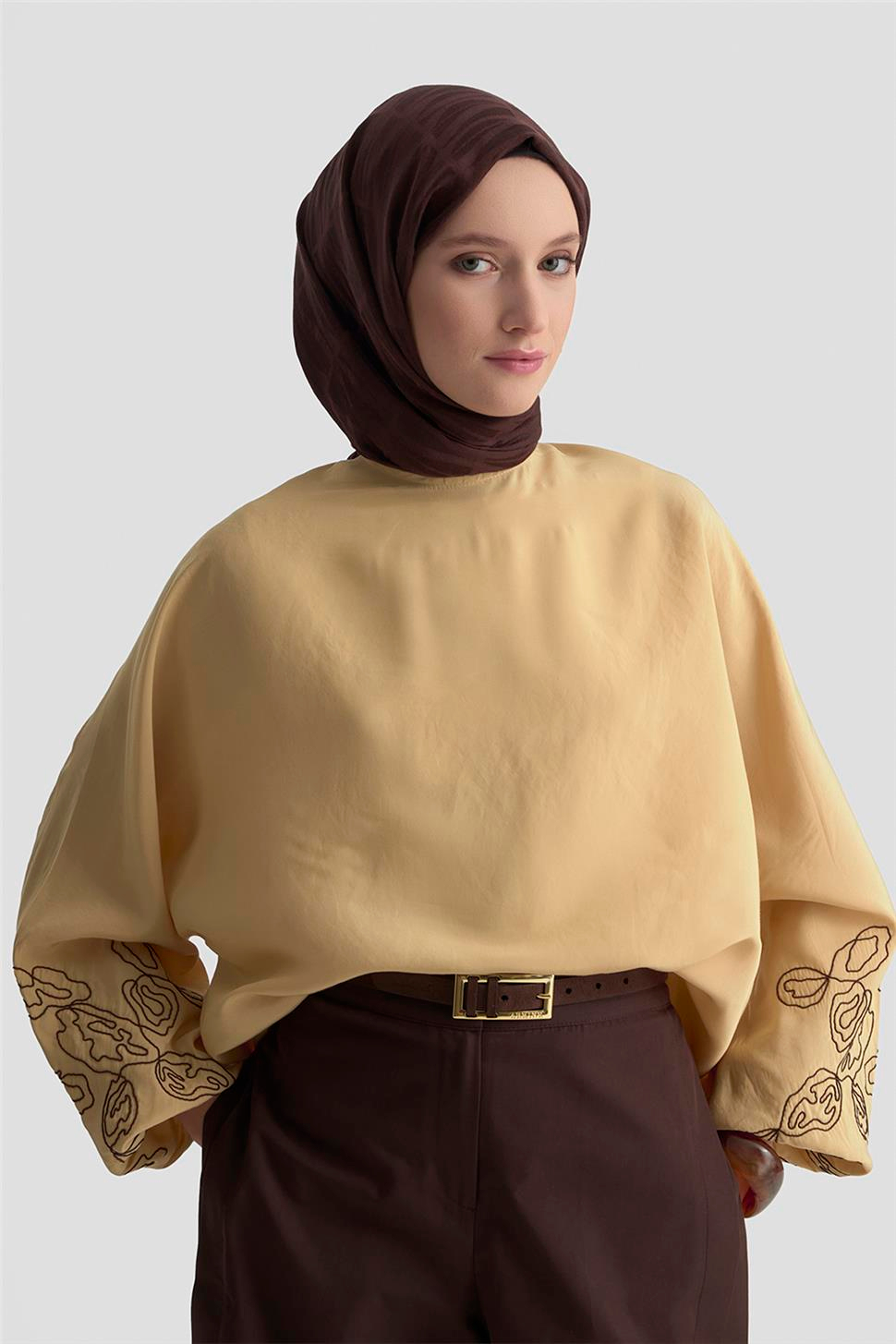 Armine Balon Kollu Bluz 25KD9001 Camel
