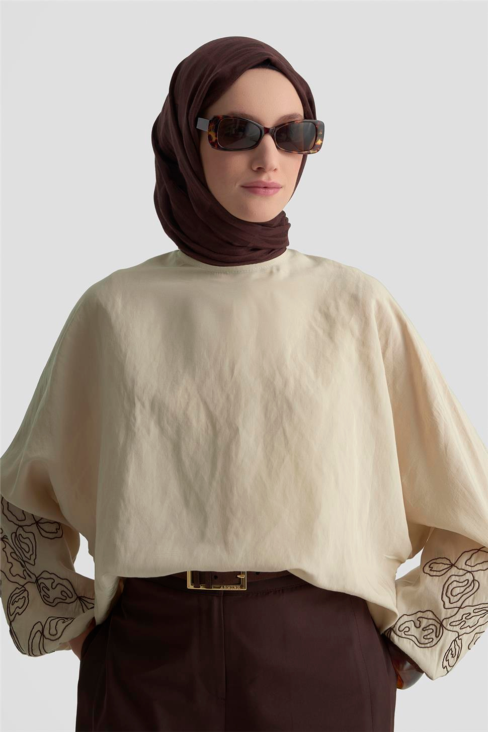Armine Balon Kollu Bluz 25KD9001 Kum