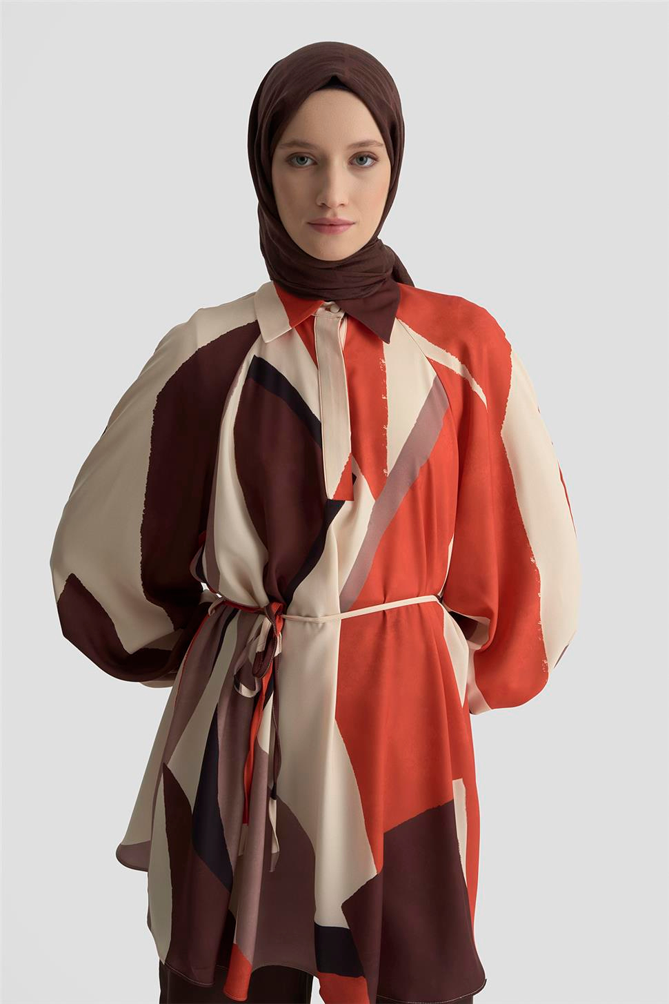 Armine Balon Kollu Dökümlü Tunik 25K4905 Kiremit (K25KA4905001-1162)