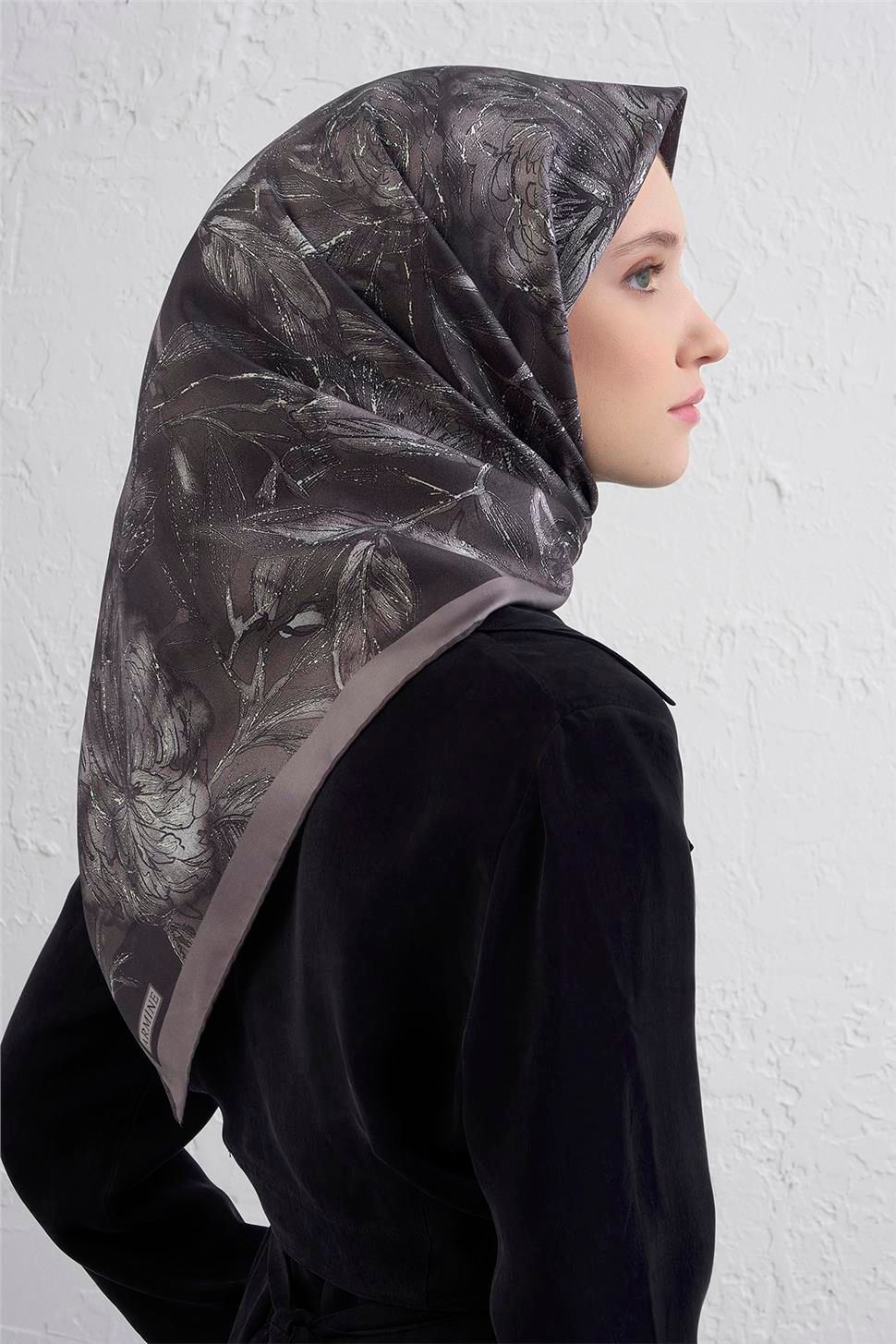 Armine Çiçek Desenli Saf İpek Twill Eşarp 9409D 07