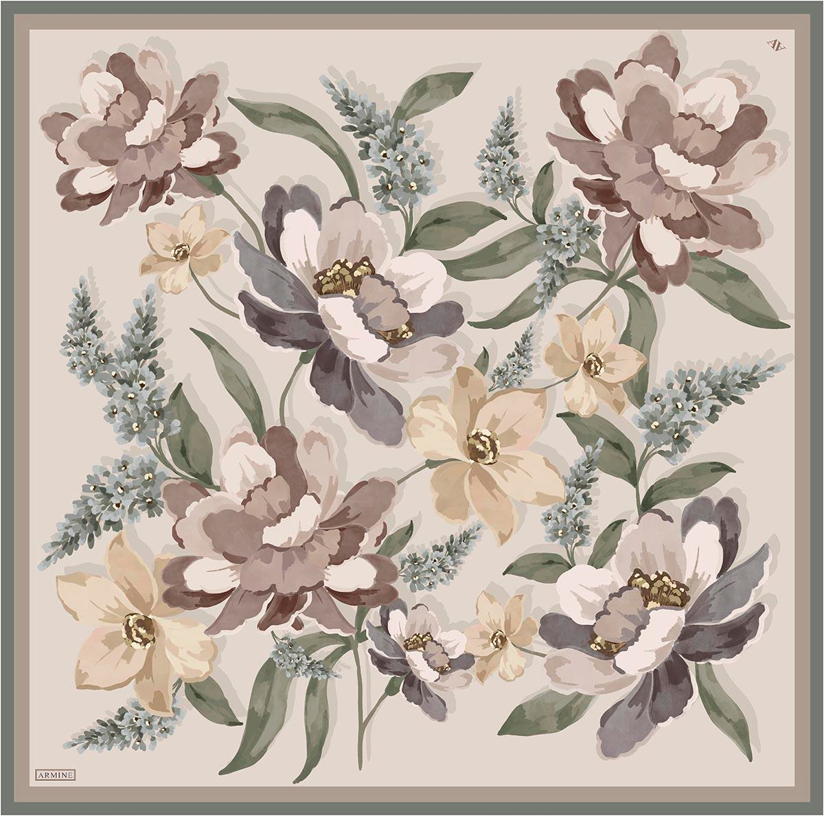 Armine Çiçek Desenli Saf İpek Twill Eşarp 9414D 4