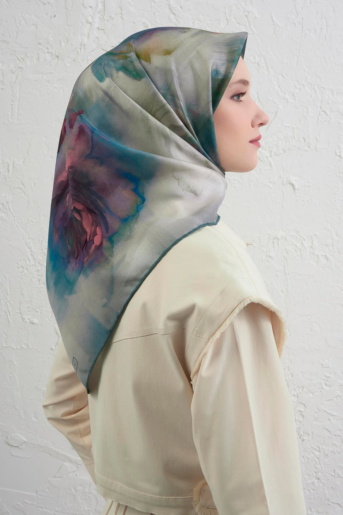 Armine Çiçek Desenli Saf İpek Twill Eşarp 9426D 09 (E25KA9426D02-1086)