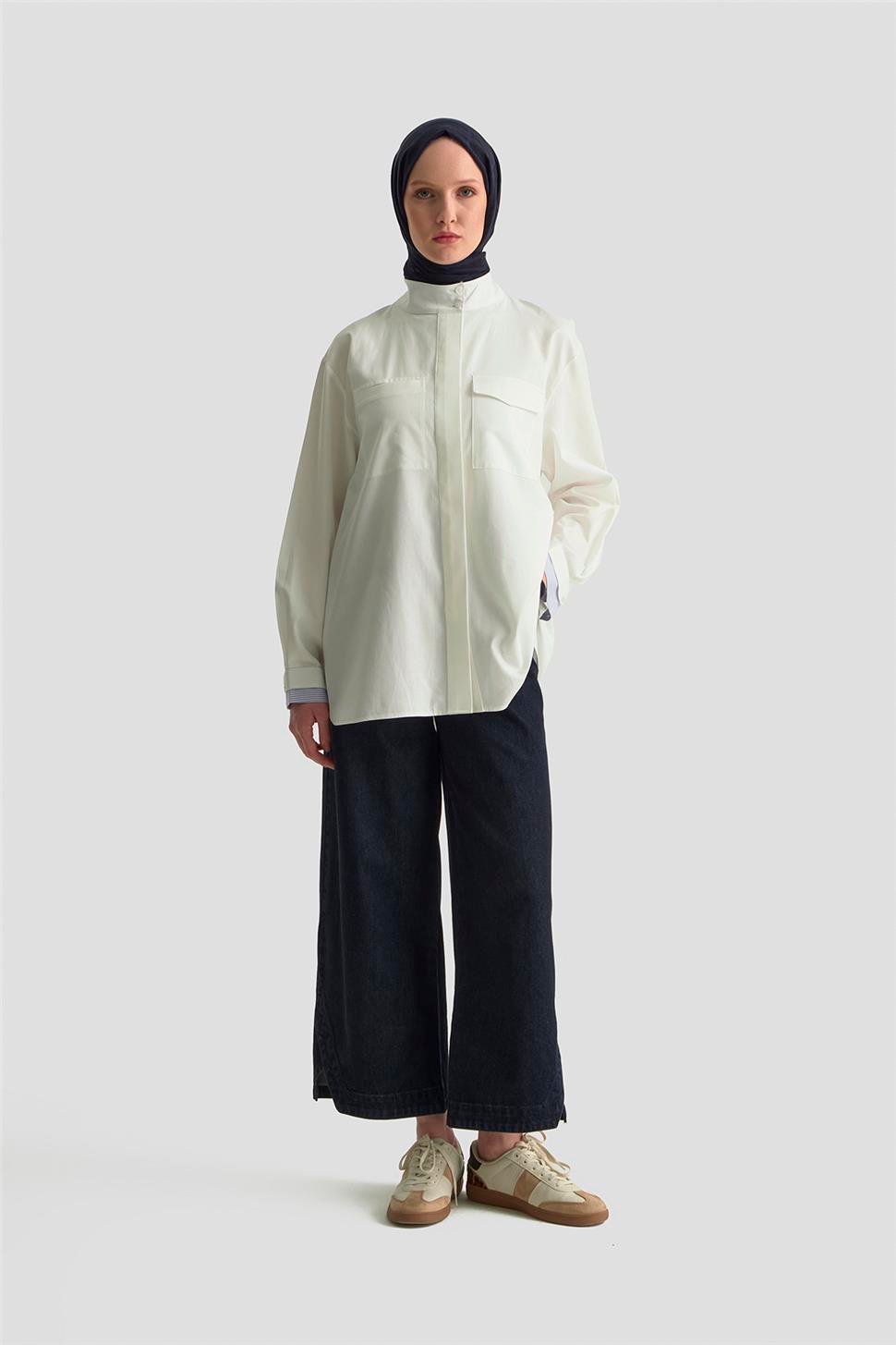Armine Çizgili Garnili Pamuk Gömlek 24Y3524 Beyaz (K24YA3524001-1432)