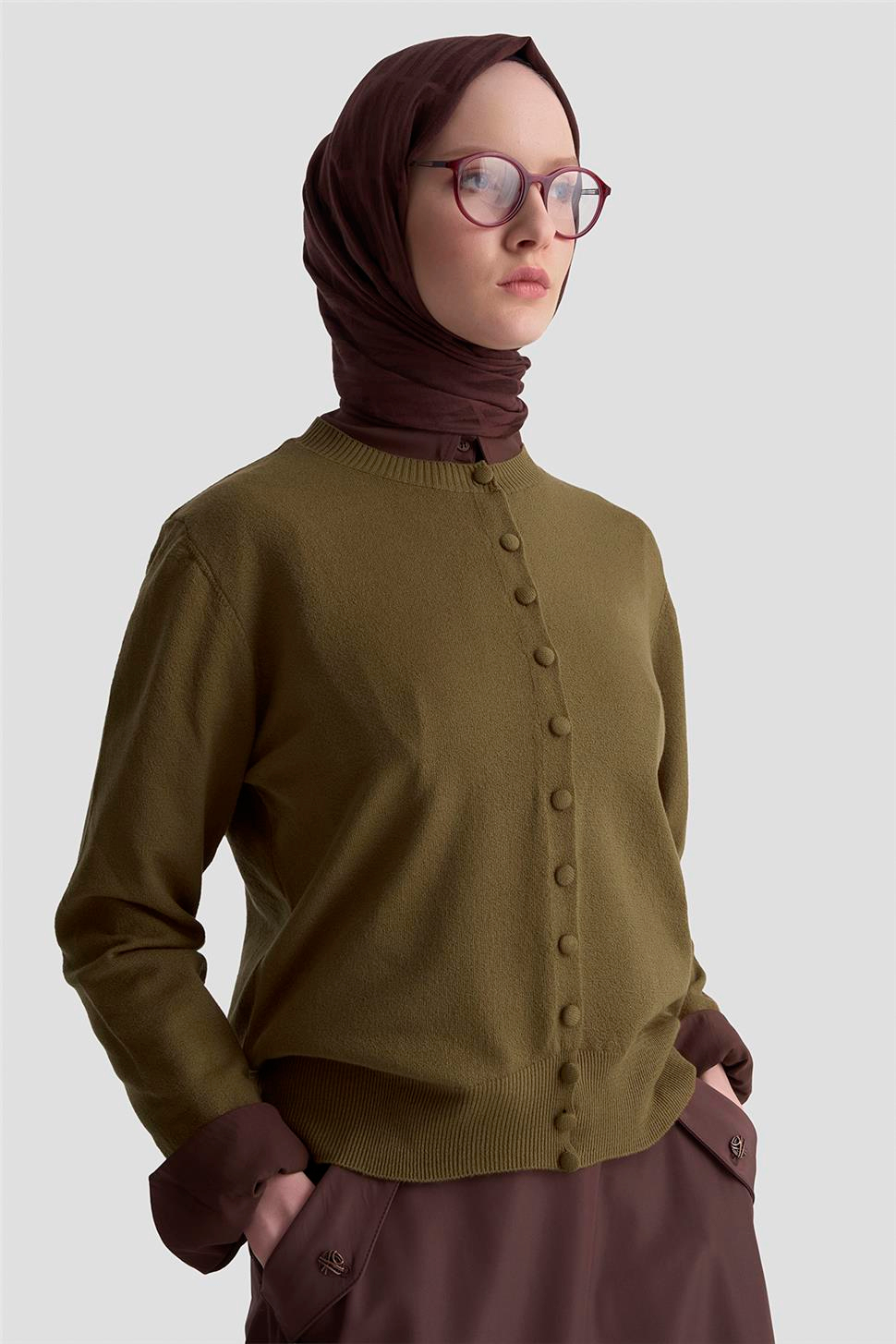 Armine Düğme Detaylı Basic Hırka 25KD7012 Haki (K25KA7012002-1675)