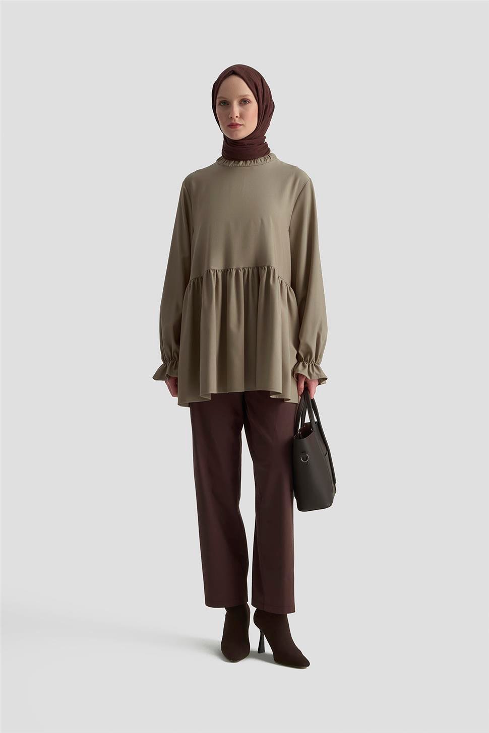 Armine Fırfırlı Balon Kollu Tunik 25KD9018 BEJ