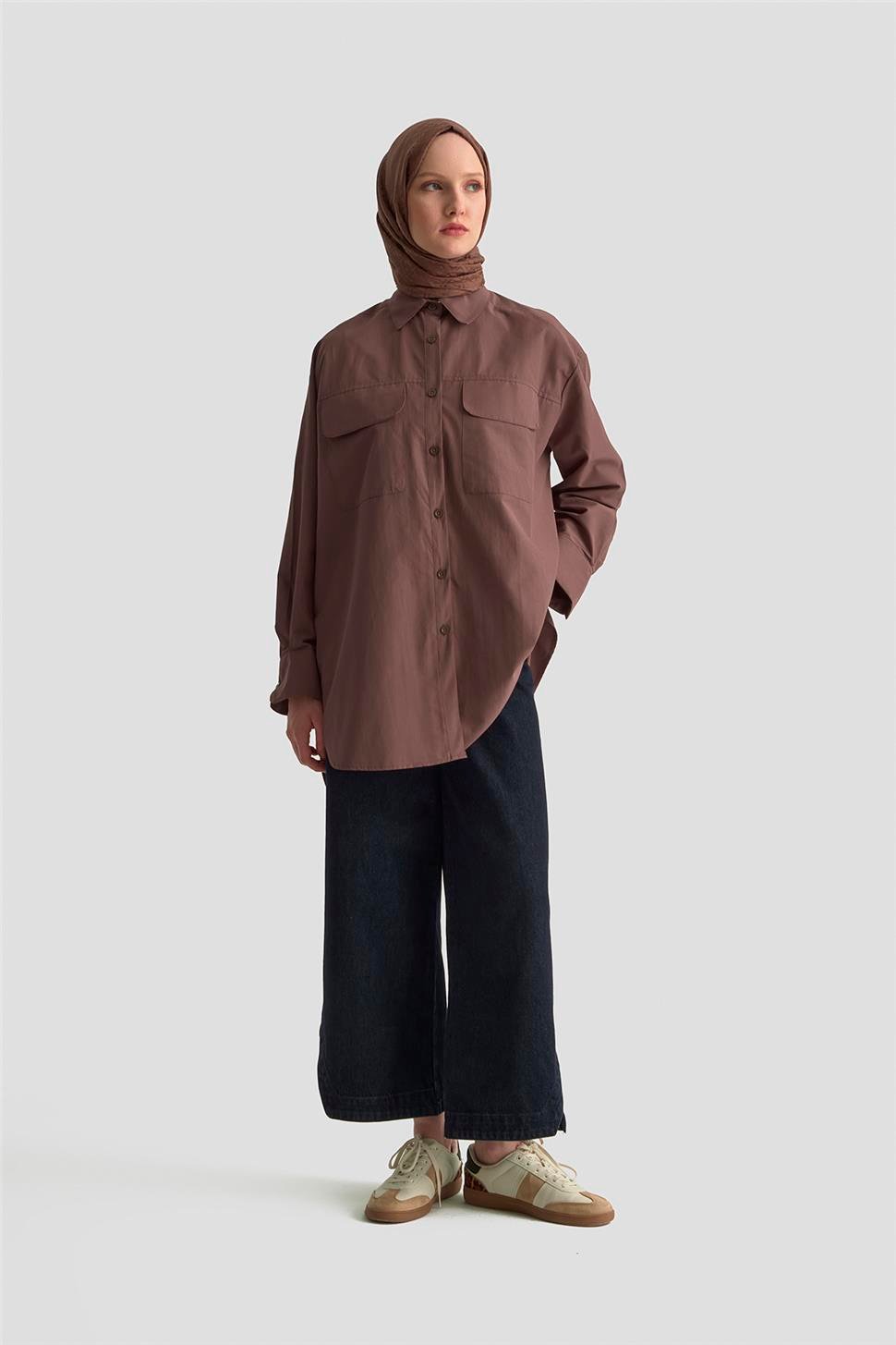 Armine İki Cepli Oversize Gömlek 25YH3443 Kahverengi