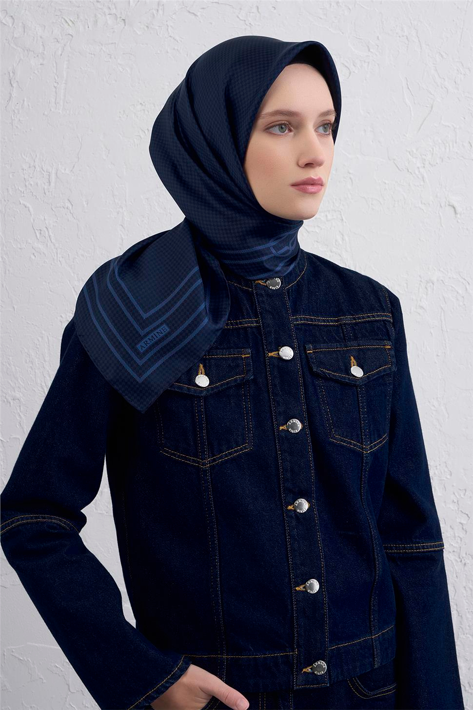 Armine Klasik Desenli Saf İpek Twill Eşarp 9404D 08