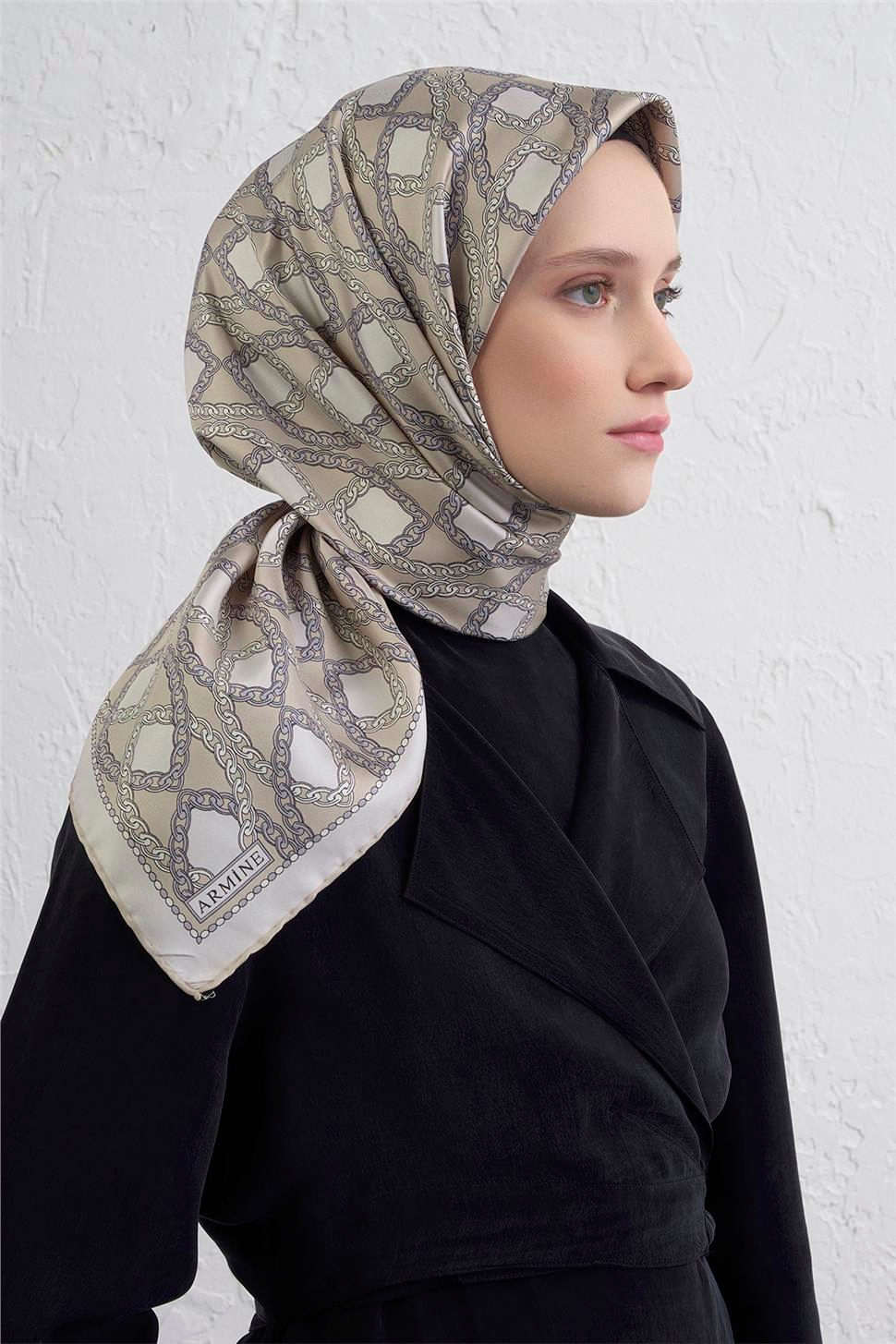 Armine Klasik Desenli Saf İpek Twill Eşarp 9410D 85 (E25KA9410D02-85)