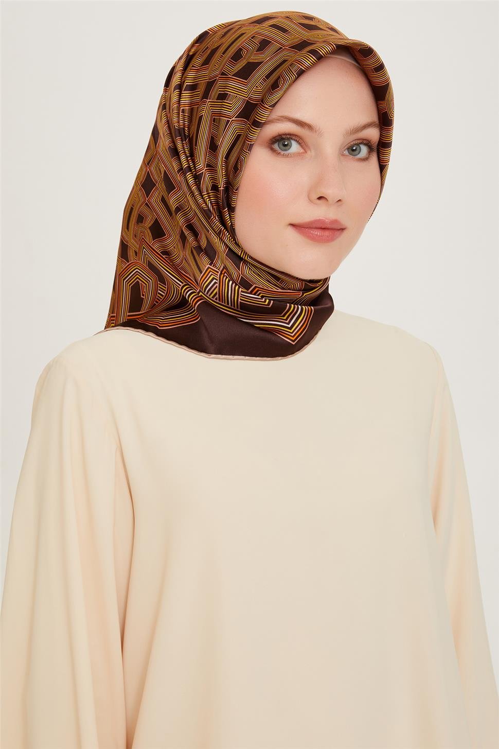 Armine Klasik Desenli Twill Saf İpek Eşarp 9213D 83