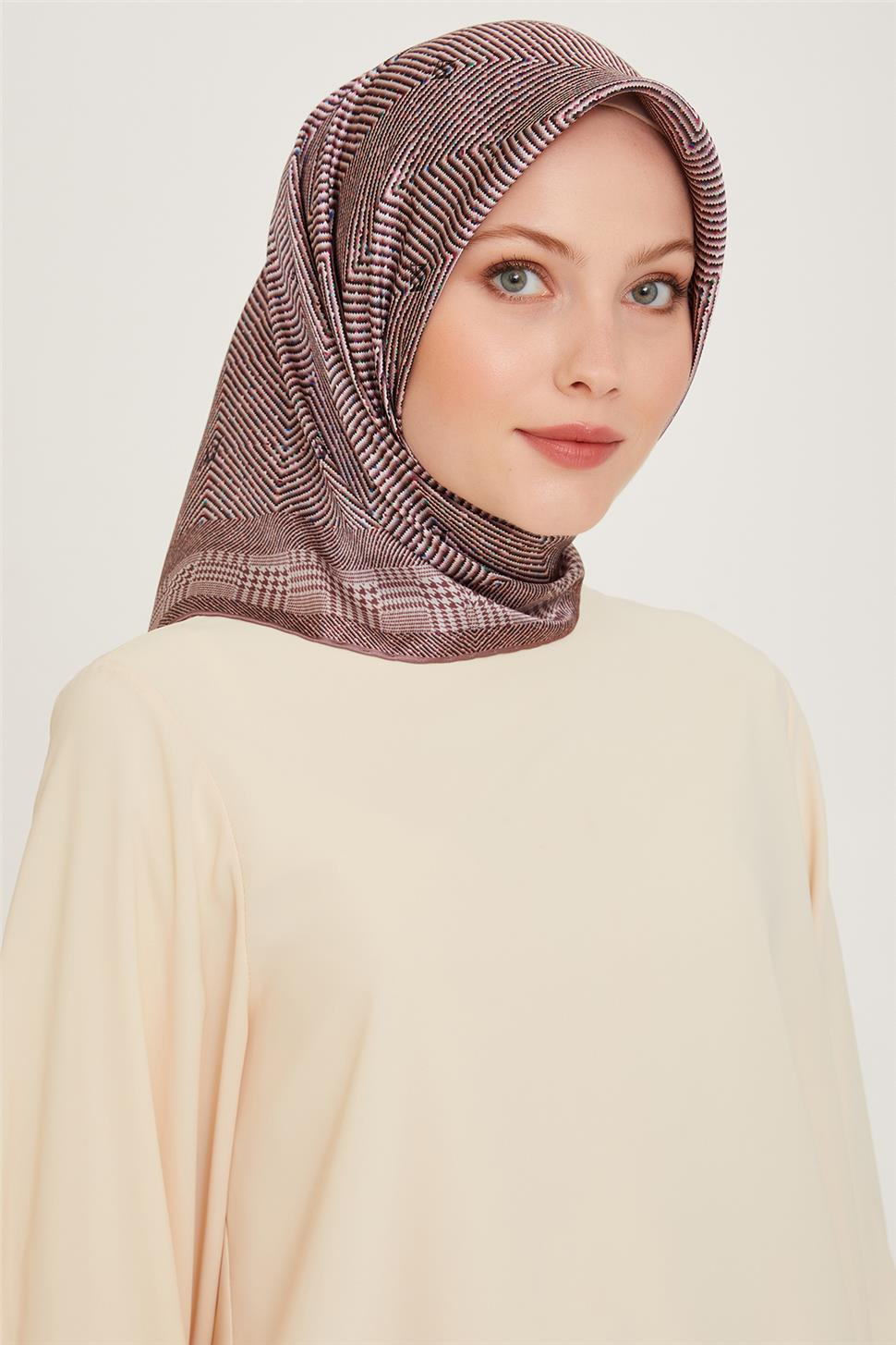 Armine Klasik Desenli Twill Saf İpek Eşarp 9252D 03 83