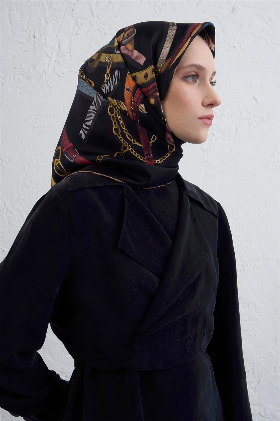 Armine Obje Desenli Saf İpek Twill Eşarp 9422D 04