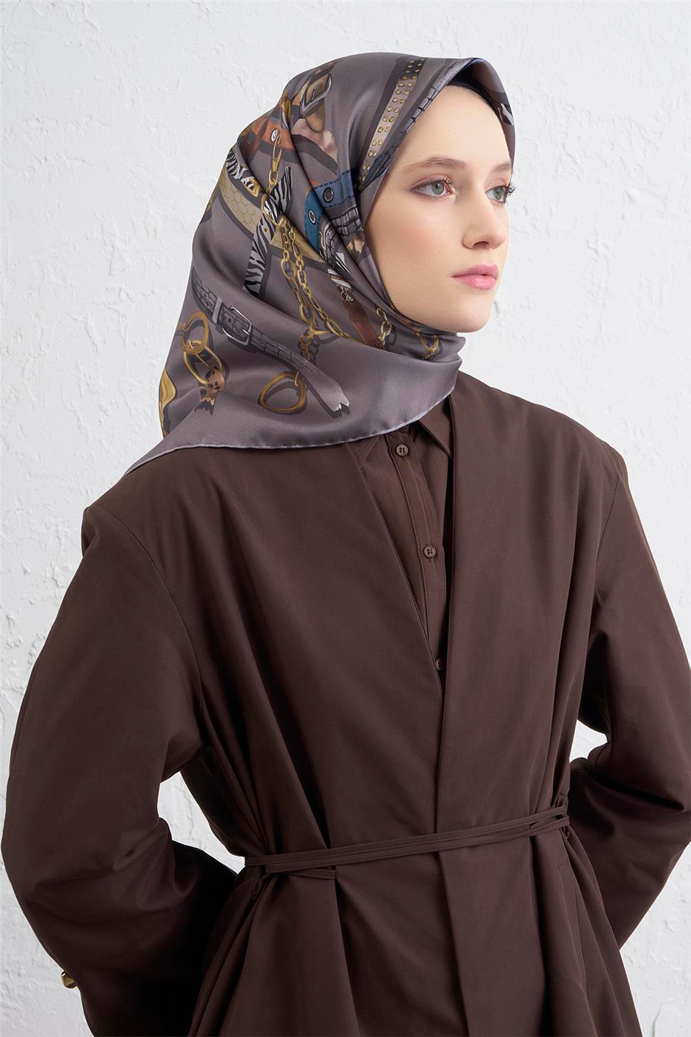 Armine Obje Desenli Saf İpek Twill Eşarp 9422D 07