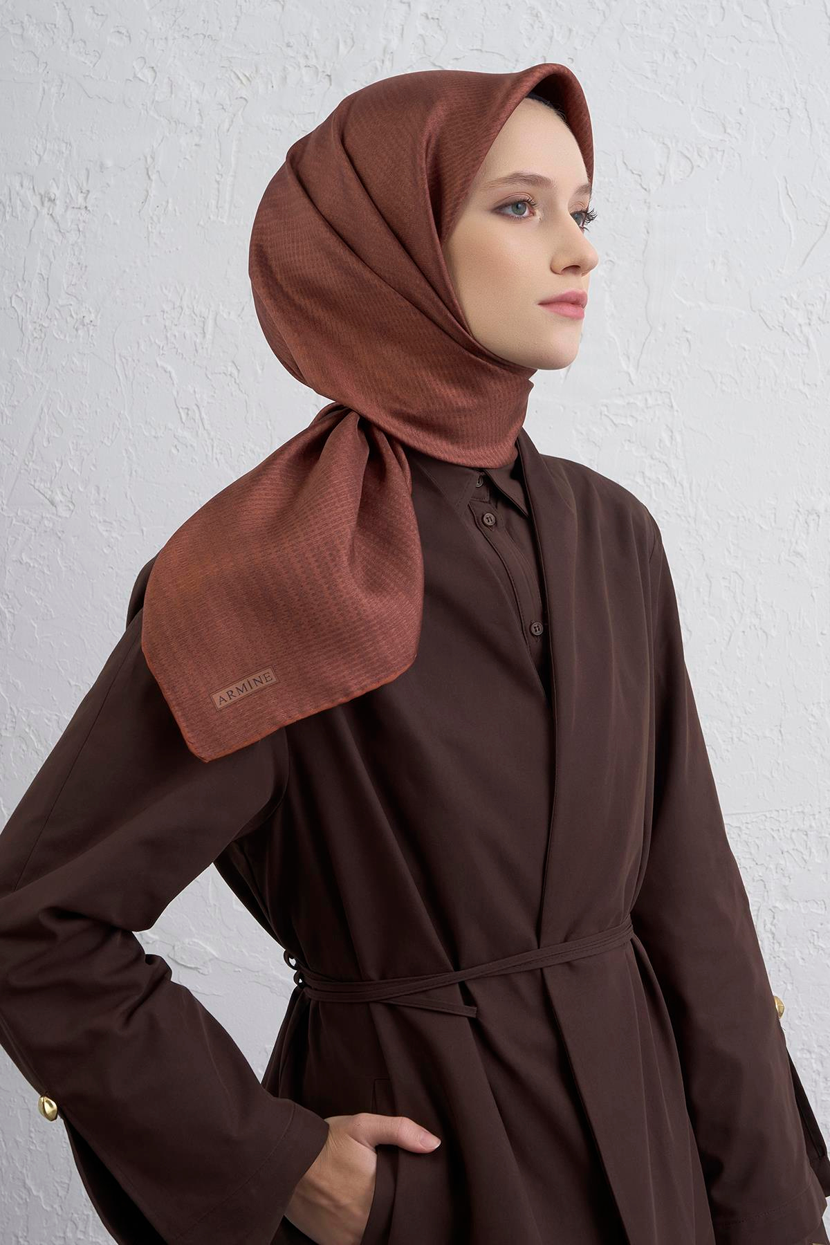 Armine Soyut Desenli Saf İpek Twill Eşarp 9415D 09