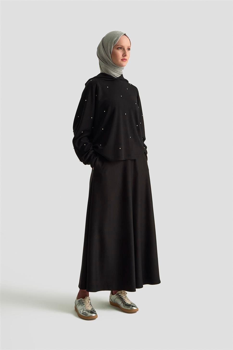 Armine Taşlı Kapüşonlu Sweat 25KD4031 Siyah