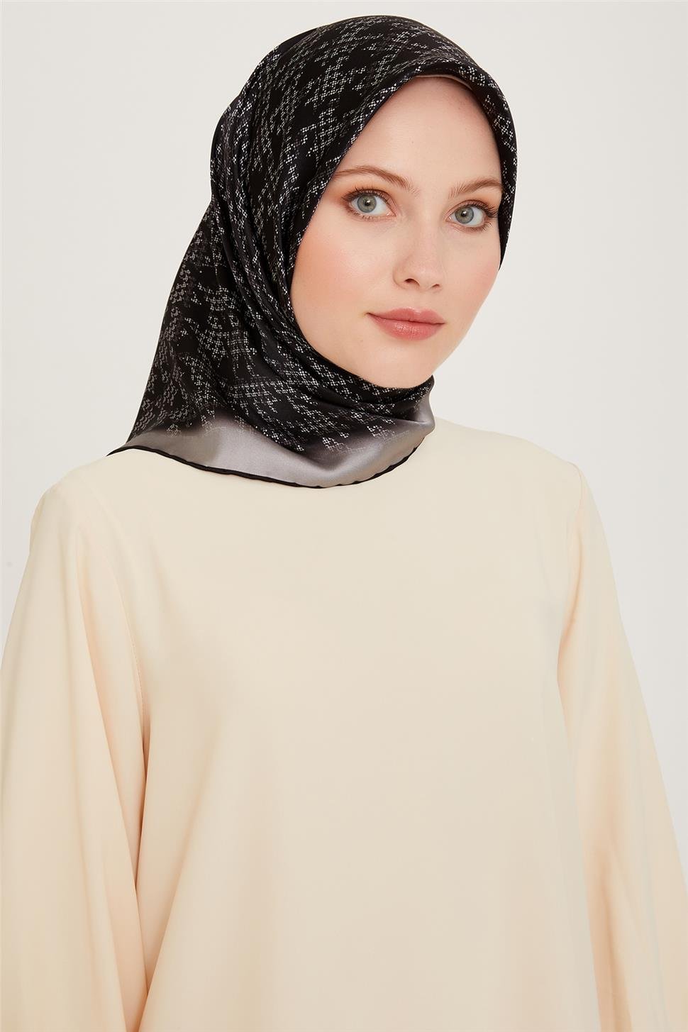 Armine Klasik Desenli Twill Saf İpek Eşarp 9239D 82