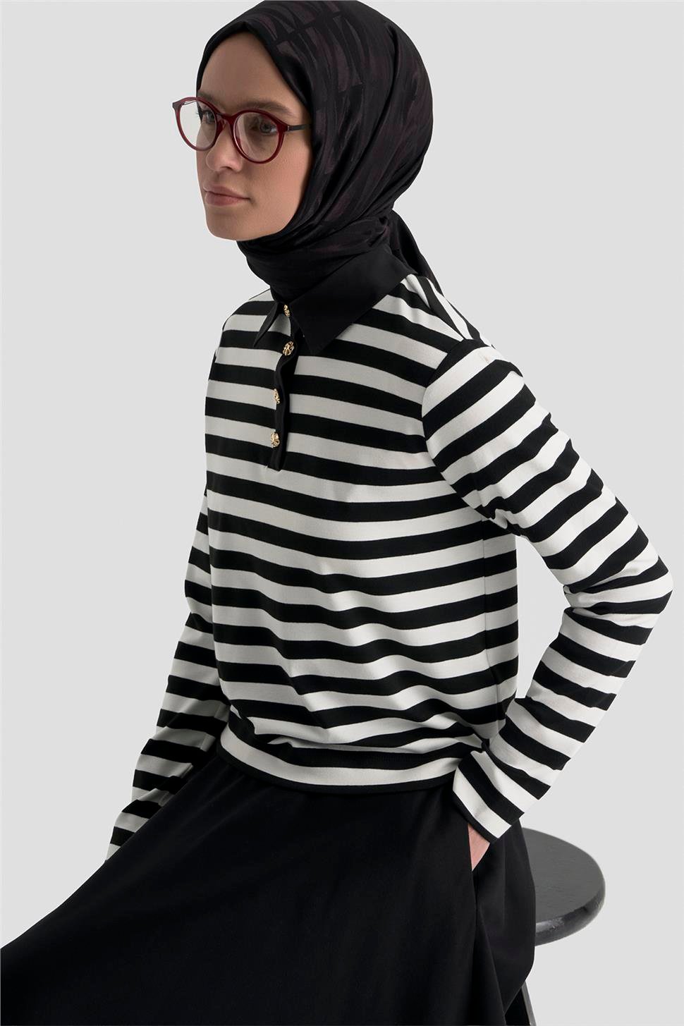 Çizgili Yakalı Badi Beyaz (AGBD1131-BYZ)