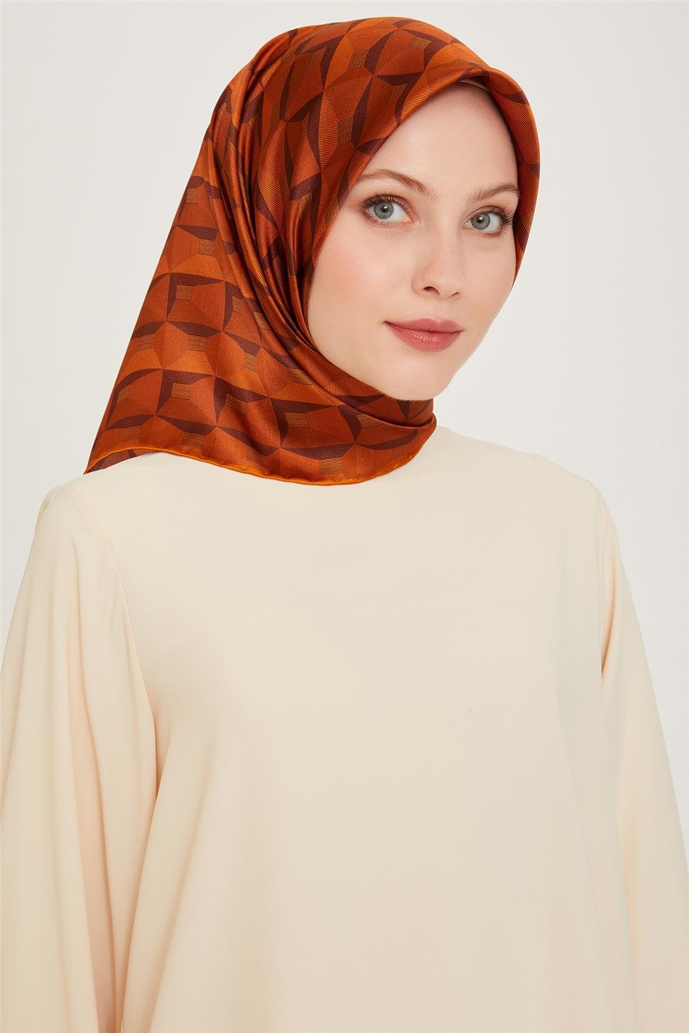 Armine Klasik Desenli Twill Saf İpek Eşarp 9204D 01